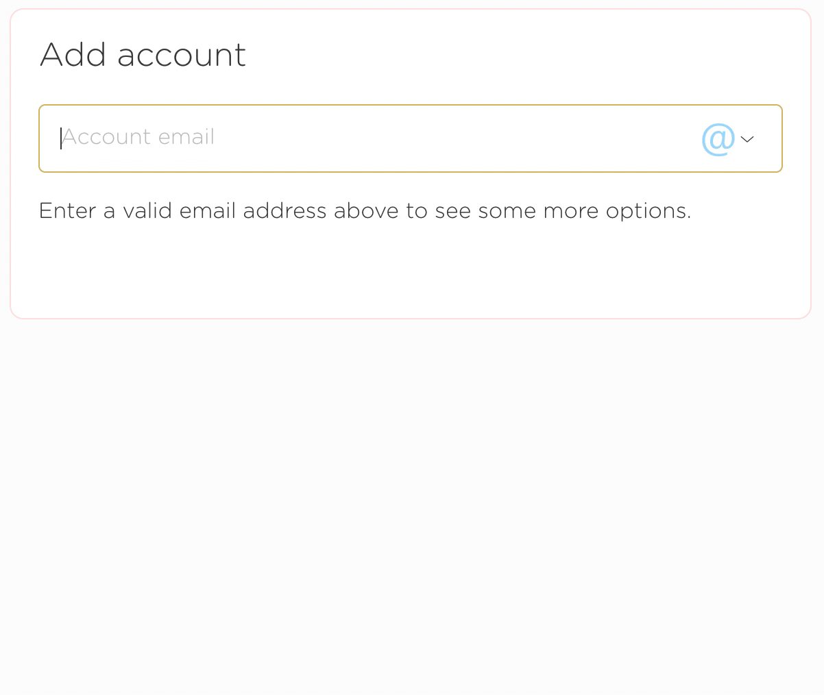 - Enter your email address and wait for us to select your account type (or you can click the dropdown on the right of the field to change the account type)