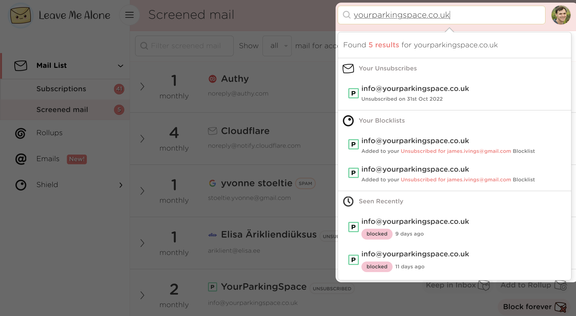 This is a simple way to find emails within the Leave Me Alone system, it will show you emails that;